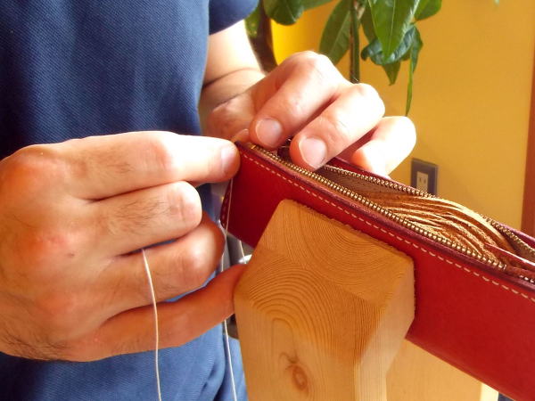 靴を製作する為のミシンや皮漉き機など機材が揃っていたことから、簡単な革製のバックや小物を作り始め20数年が経ちます。店内にあるバックや小物はオリジナル。型紙づくりから、裁断、縫製まで手作業で行うので、少量生産です。長く愛用いただけるよう素材を選び、ミシンや手縫いで仕上げています。